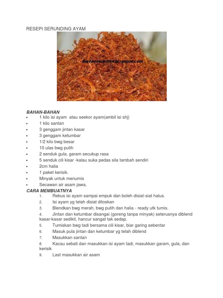 Penjagaan rasa asli yang tak sama dengan. Resepi Serunding ayam ini jumlah 4kg Terima Kasih kerana menonton serunding ayammenuHariRaya. RESEPI SERUNDING AYAM OLEH.